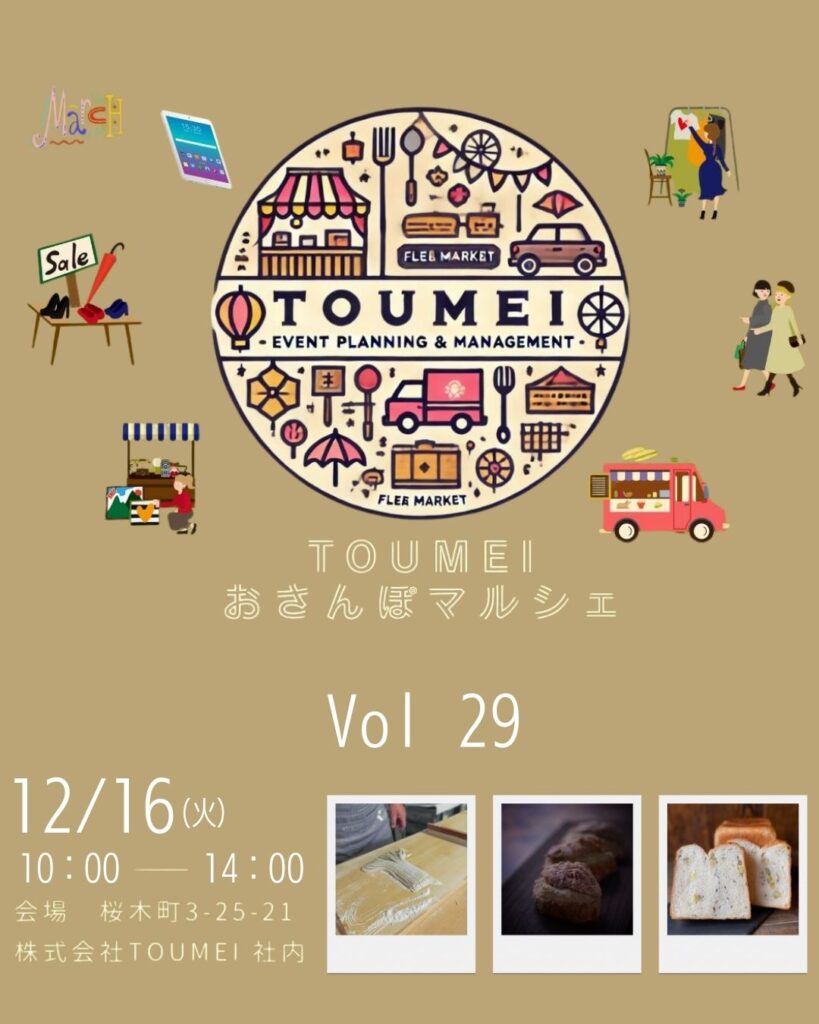 弊社株式会社TOUMEIの社屋を使って毎月マルシェを開催しています。